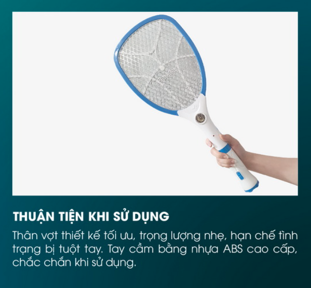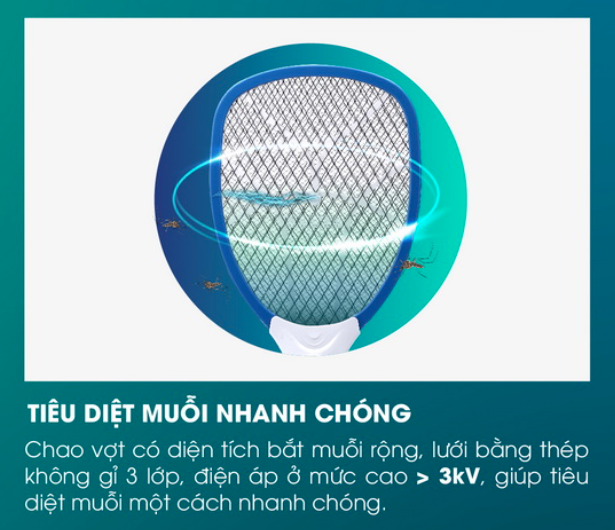 Lưới vợt thiết kế 3 lớp tiêu diệt muỗi nhanh chóng.